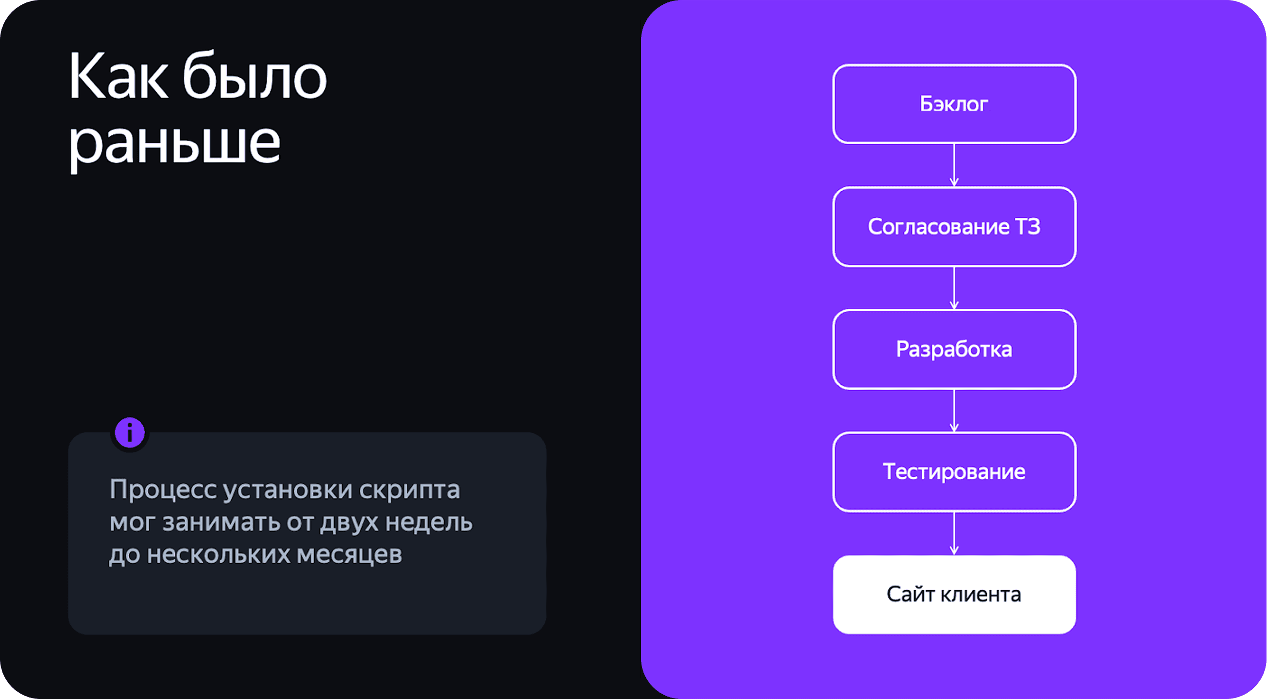 Если что-то шло не так, ненужный скрипт можно было сразу удалить из контейнера, при этом никак не влияя на сайт. Это было круто, удобно и быстро.