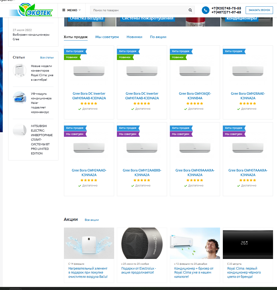 —Создание Интернет магазина на 1с Битрикс для "Климатические системы" ООО "Экотек"