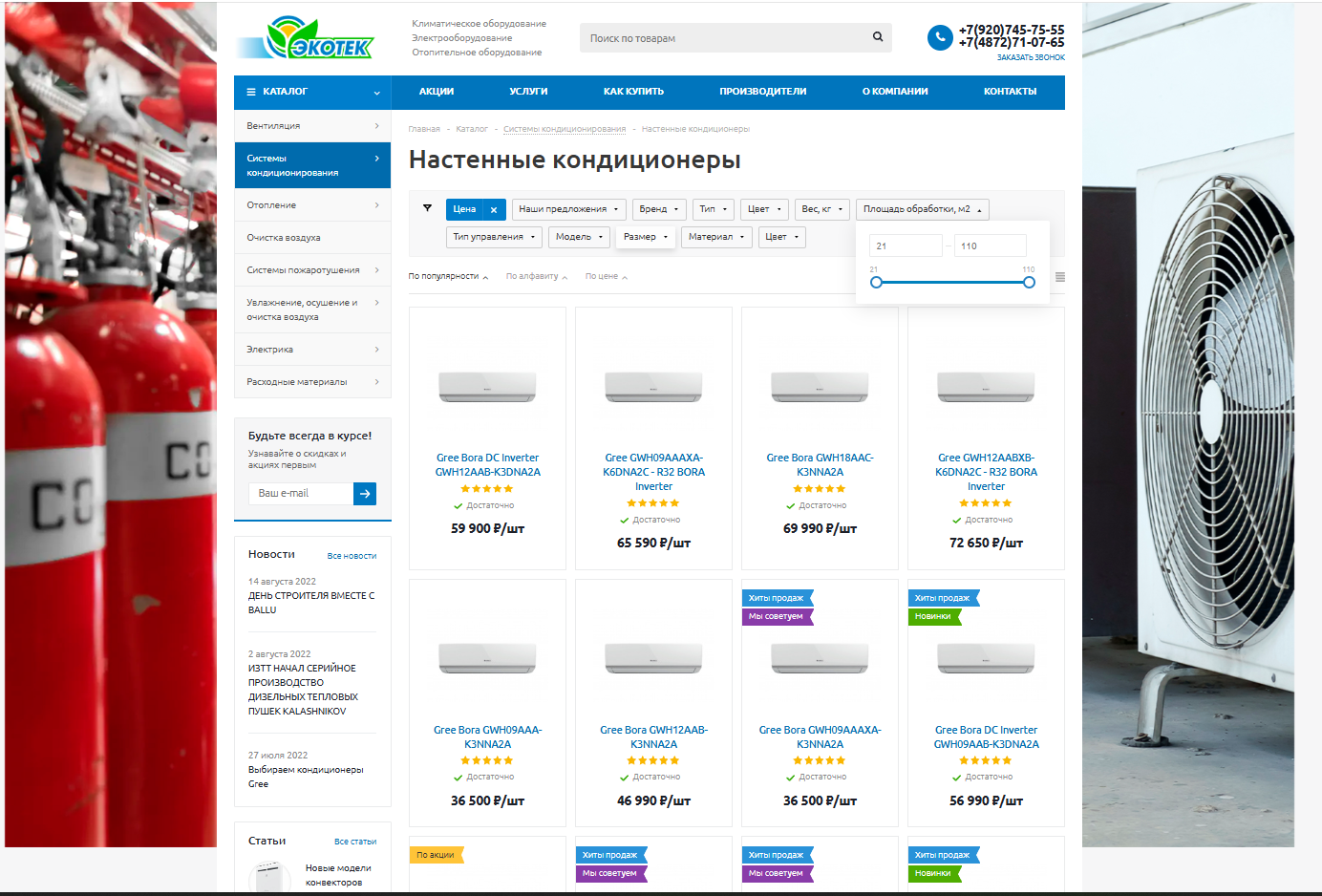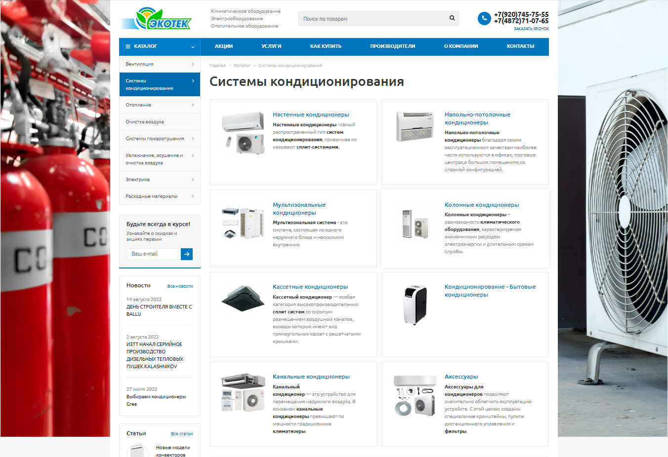 Создание Интернет магазина на 1с Битрикс для "Климатические системы" ООО "Экотек"