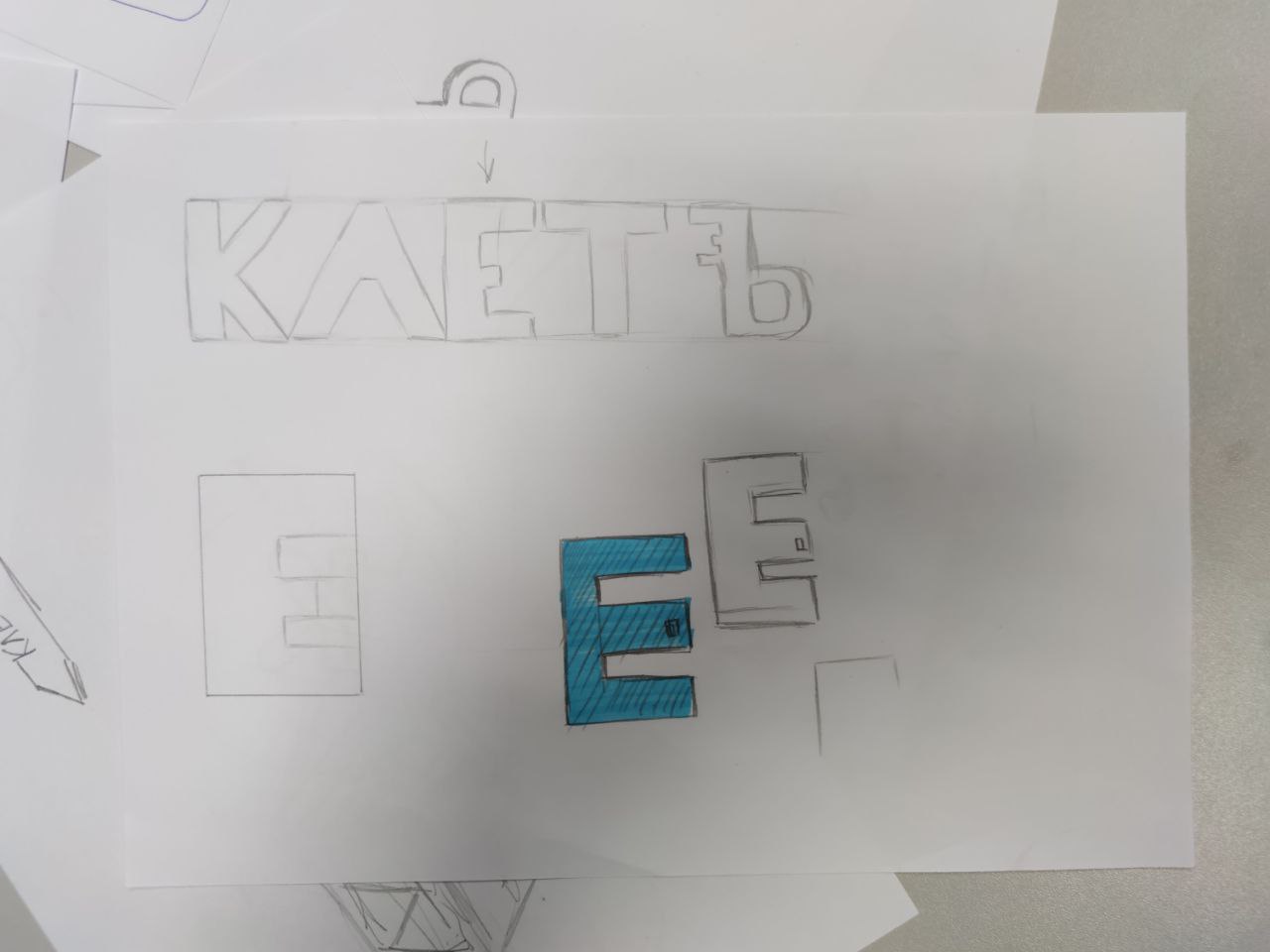 Мы сделали несколько первых эскизов вручную — карандашом на бумаге. На этом этапе прорабатывались разные формы ключа, композиции и варианты стилизации знака.