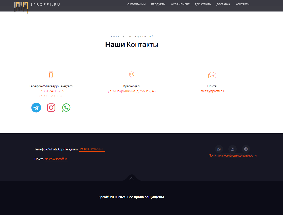 Таким образом, SPROFFI.ru представляет собой эффективный инструмент продвижения продукции и взаимодействия с клиентами, сочетая современные технологии веб-разработки и маркетинга.